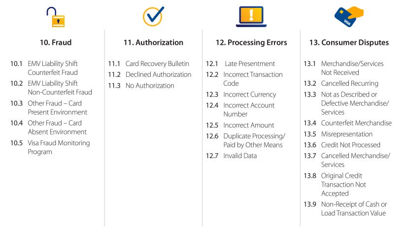 The timeline for Visa chargebacks is dependent on the dispute type outlined below.